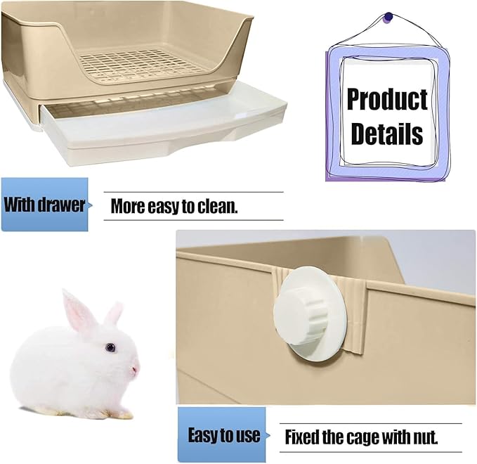 - CONVENIENT: The large rabbit litter box adds creative drawers that are easier to clean, just take out the drawer, dump out the trash, put a mat on it, put it back in and you're done, providing a clean and comfortable environment for your pet