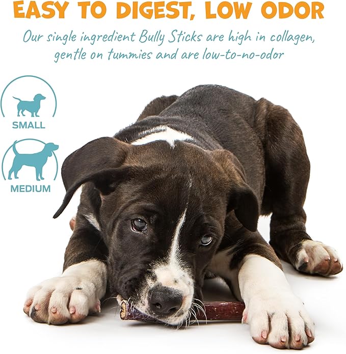 - Digestible Dog Chews - Enjoy a flavorful & non rawhide dog chews long lasting treat made from one ingredient. Our bully sticks 6 inch offer a satisfying chew that supports your dog’s wellness.