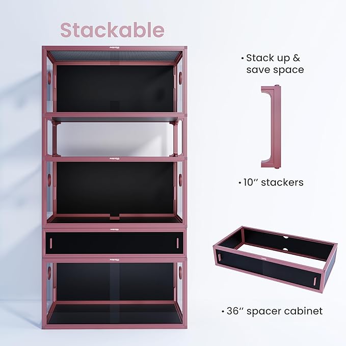 - 【Say NO to Heavy Structure】Overall sturdy and light. Easy assemble in six steps and comes with a pre-built bottom and top. It is stackable, making it an ideal option for housing multiple reptiles in the same room.