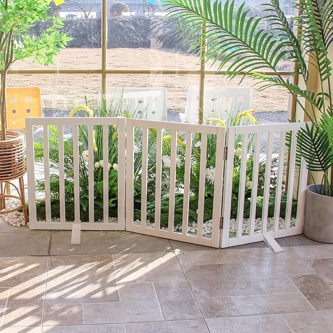 ZJSF Freestanding Indoor Dog Gate for House Foldable Wood White Puppy Gate for Doorways Pet Gate for Stairs Extra Wide Pet Fence 32" Height 3 Panels