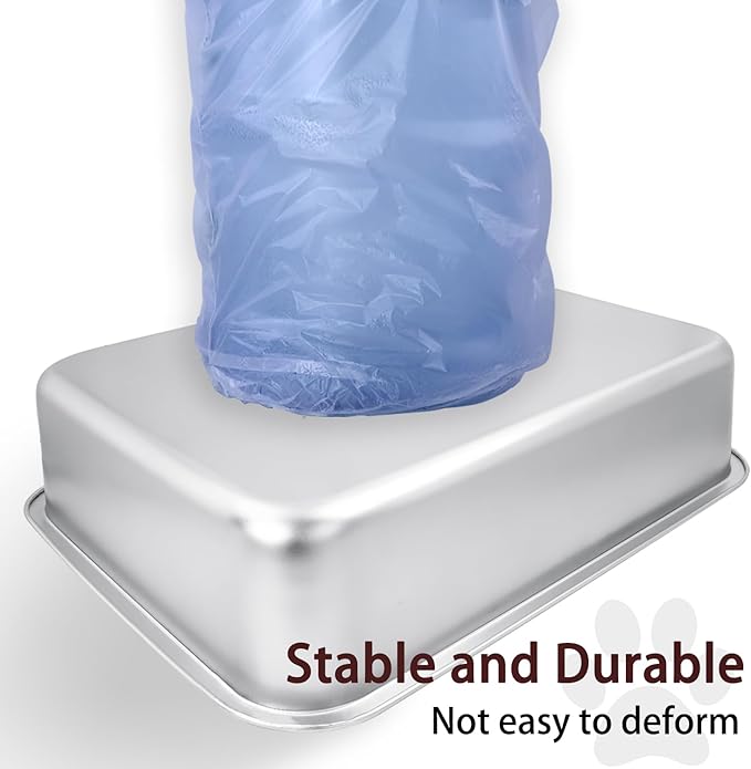- ANTI-SLIP: Each stainless steel cat litter box comes with four non-slip pads to prevent the litter box from moving and scratching your floor. The four corners of the cat litter box are rounded corners to protect your cat from being scratched. The edges of the cat litter box are also thickened to make it easy for you to grab