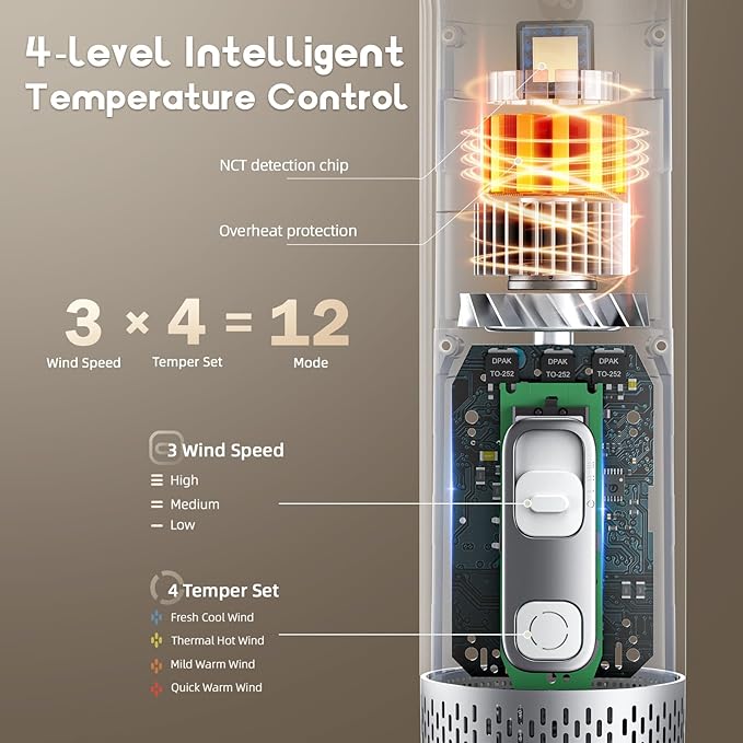- 12 Modes & Safe Temp Control: 3 speeds + 4 temps suit all pets & seasons; NCT chip & overheat protection ensure safe, comfortable warmth.