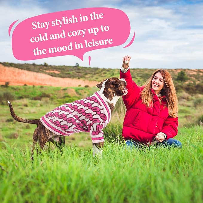 Dynamic Letter Patterned Button Cardigan Dog Sweaters,Boys' Dog Sweater,Girls' Dogs Sweaters,Knitted Pet Clothes,Pet Clothing,Fit for Kinds of Dogs and Different Seasons (Pink 2XL)