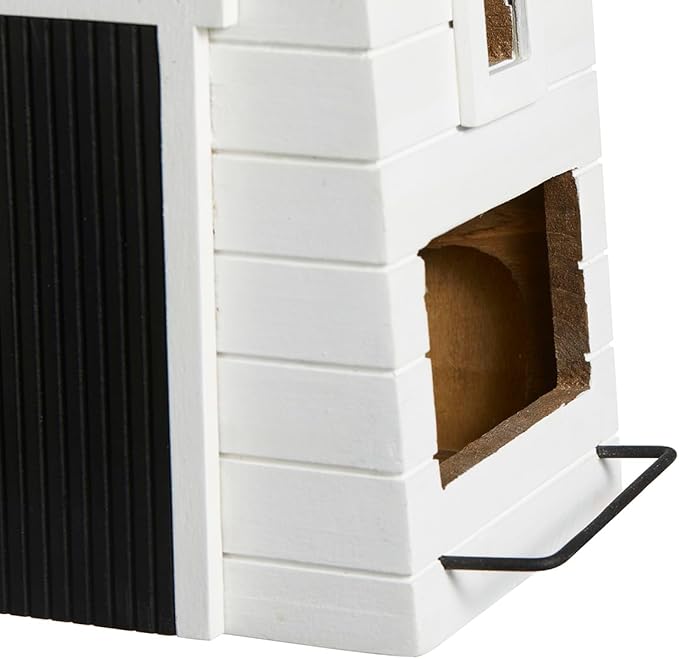 - 【Decorative Birdhouse for Outside】This modern birdhouse is crafted of durable solid wood and a classic white and black color combination, creating a striking contrast that adds visual interest to your space. Attract wild bird like wrens and chickadees to your garden or backyard with this whimsical birdhouse for outside display.