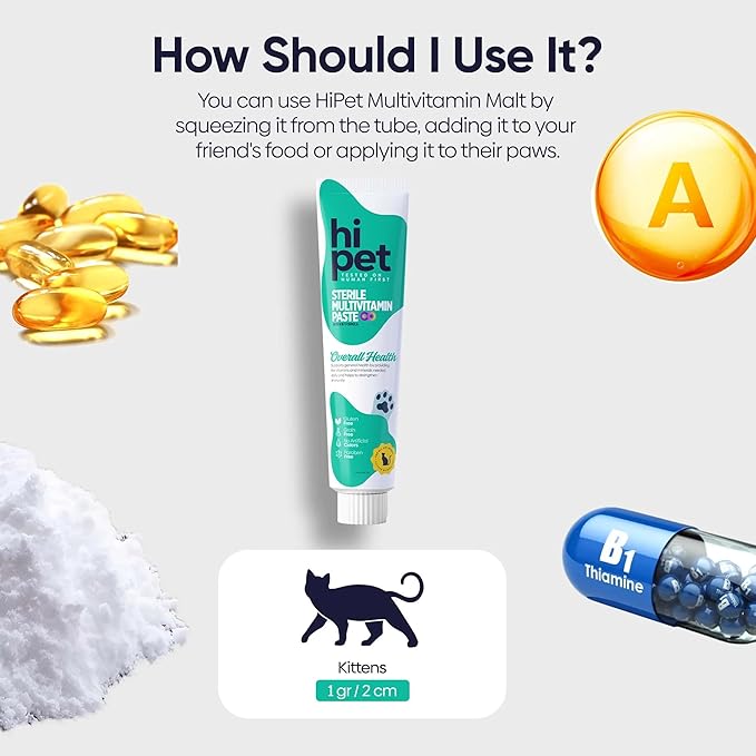 Hi Pet Multivitamin Cat Malt, Cat Treats Lickable, Supports Immune System, Metabolism, Dental Health, Weight Control, Iron for Cats, 2.65 Oz (Pack of 6)