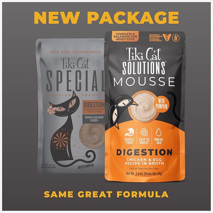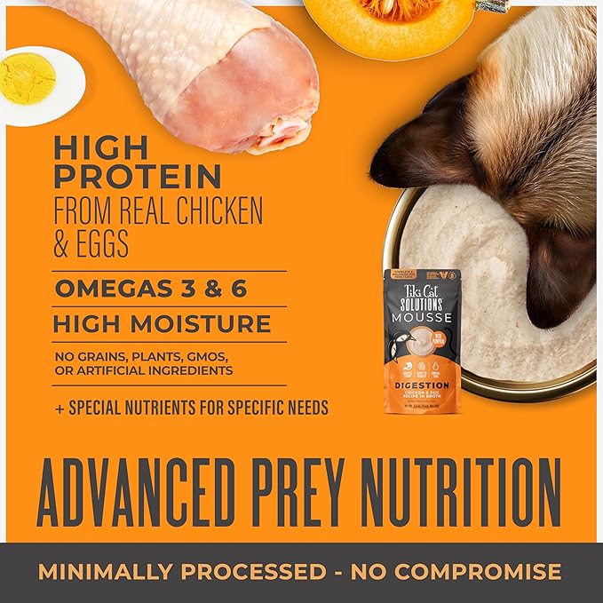 Tiki Cat Solutions Mousse Multipack Wet Cat Food, Digestion, Chicken & Egg, 2.4 oz. Pouch (12 Count)