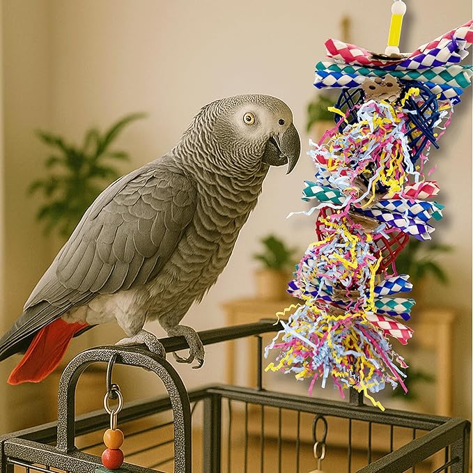 - * Ideal for foraging, shredding, and tactile play, this toy keeps birds mentally and physically engaged, helping to relieve boredom and reduce cage stress through enriching daily interaction.