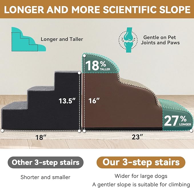 - Multi Sizes Fit Every Need: Zerbuger foam dog stair is not suitable for large dogs, please use it for pets under 50lbs! 3-steps are suitable for chairs and couches up to 20inch, 4-steps are suitable for high sofas, beds and window up to 25inch. Please confirm whether the size is suitable for your love pet first.