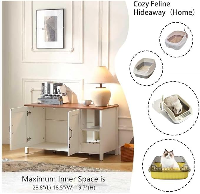 - 4)【Easy Assembly of litter box enclosure furniture】;All parts and accessories are labeled, plus step-by-step instructions are included to ensure a quick and easy setup.We have streamlined all possible steps without compromising quality to achieve optimal and straightforward installation process.