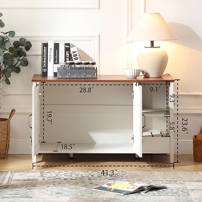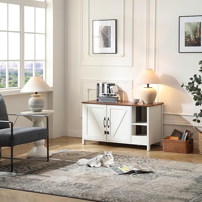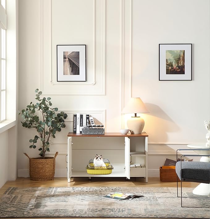 41.3'' Cat Litter Enclosure,Adjustable Shelf for Dog Proof and Storage,Locks Added for Cat, Litter Collector,Small Indoor Cat House,Antique White