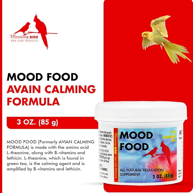 Morning Bird Mood Food (Avian Calming Formula) 3 Oz – Natural Calming Supplement for Birds – Reduces Stress, Feather Plucking & Aggression – Stress Relief Supports with B-Vitamins for Daily Calm