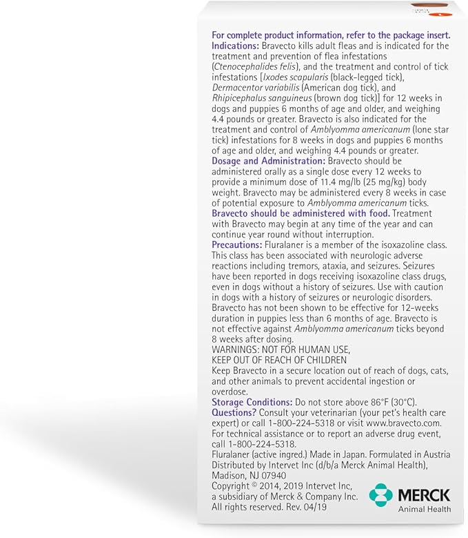 BRAVECTO Chew for Dogs, Flea & Tick, 1 Chew, 12 Week Supply, 9.9-22 lbs., Orange Box