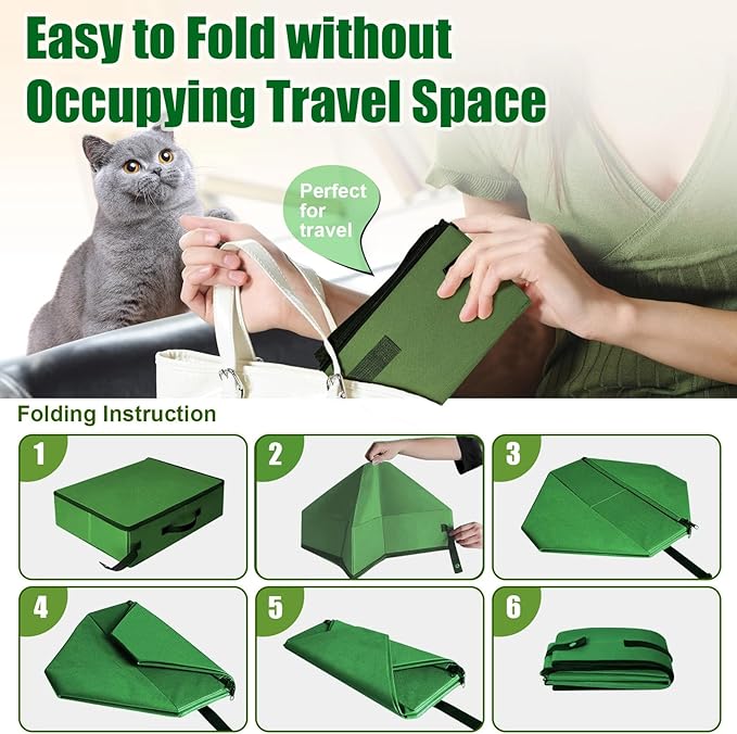 - 【Portable Foldable Design Simplifies Travel】Portable Cat Litter Box features a lightweight foldable structure, collapsing to 8''×4''×2'' for seamless storage in backpacks or car trunks—ideal for road trips, camping, and hotel stays