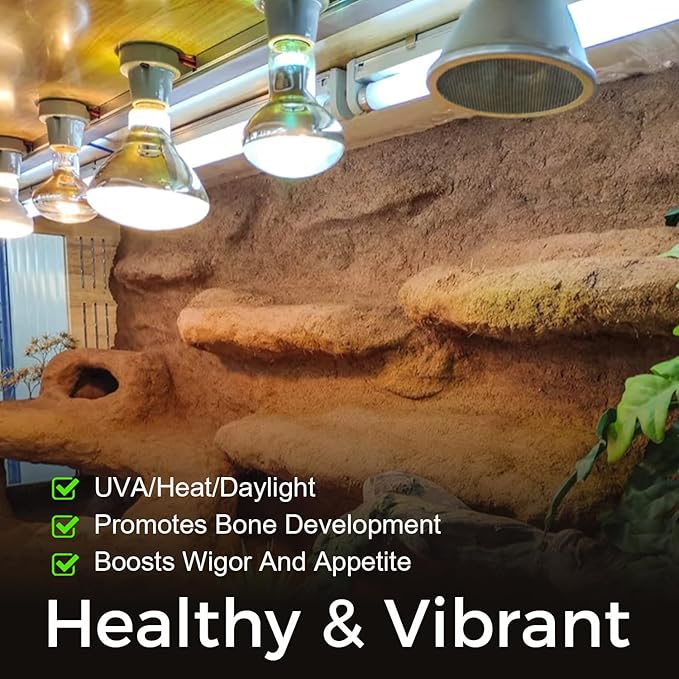 - Perfect for various reptiles and amphibians, including bearded dragons, tortoises, snakes, geckos, frogs, and even small pets like hedgehogs and hermit crabs. Creates a natural day-night cycle when paired with nighttime heating lamps