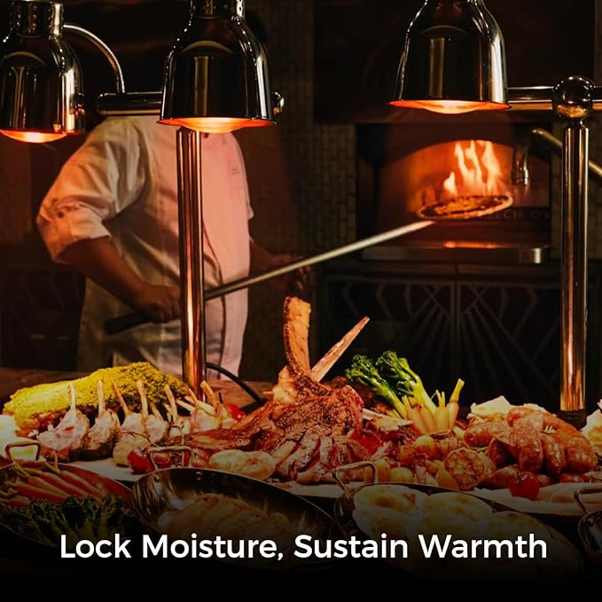 - Wide application: This bulb rapidly generates penetrating infrared heat, heating food from core to surface within minutes. It effectively locks in moisture and keeps your food warm continuously