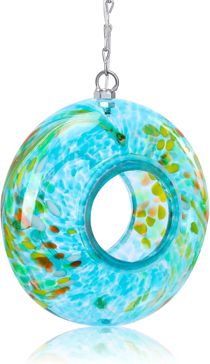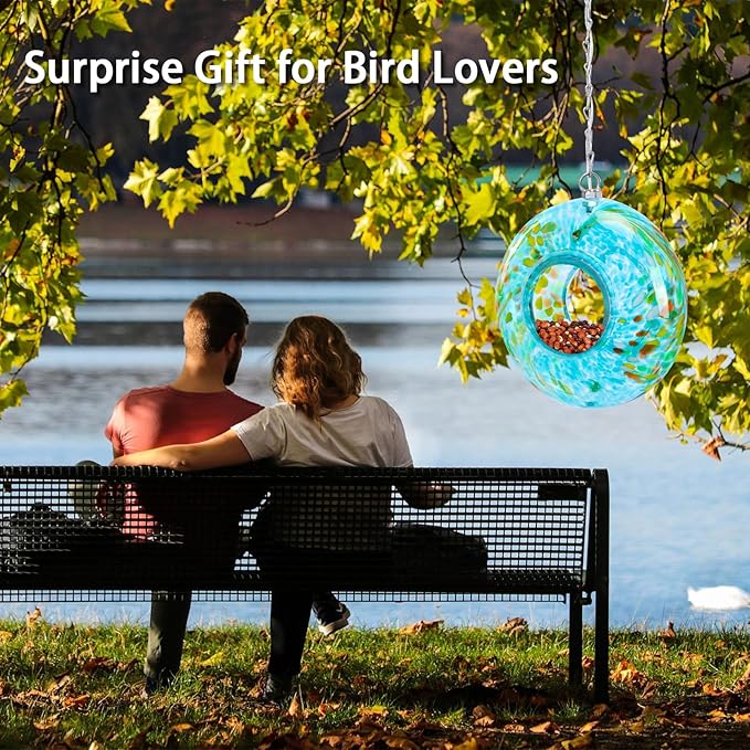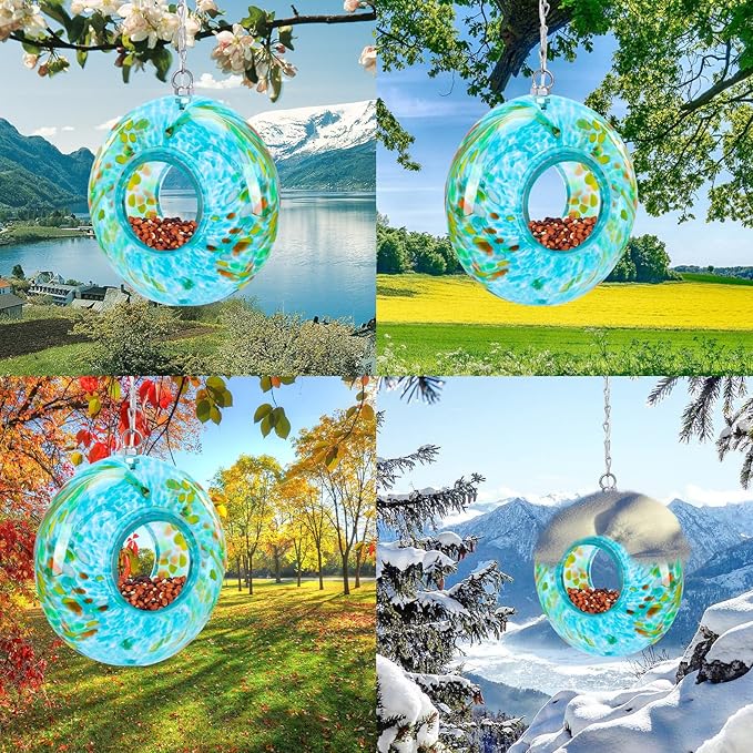 - Hanging Bird Feeder: Mosaic hang bird feeders for outdoors is made of strong glass. Birds can eat from the rim or hop inside during bad weather