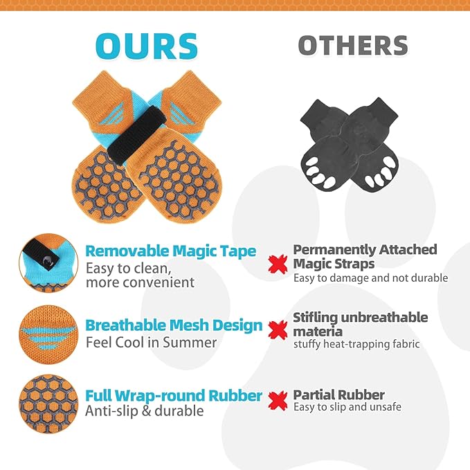 - SUMMER BREATHABLE DOG SOCKS FOR HOT PAVEMENT: Keep your furry friend’s paws safe and comfy all summer long! Our breathable, lightweight dog socks feature advanced mesh ventilation to prevent overheating, while the non-slip grippy soles provide traction on hot pavement, sand, or rough terrain.no more limping after walks!