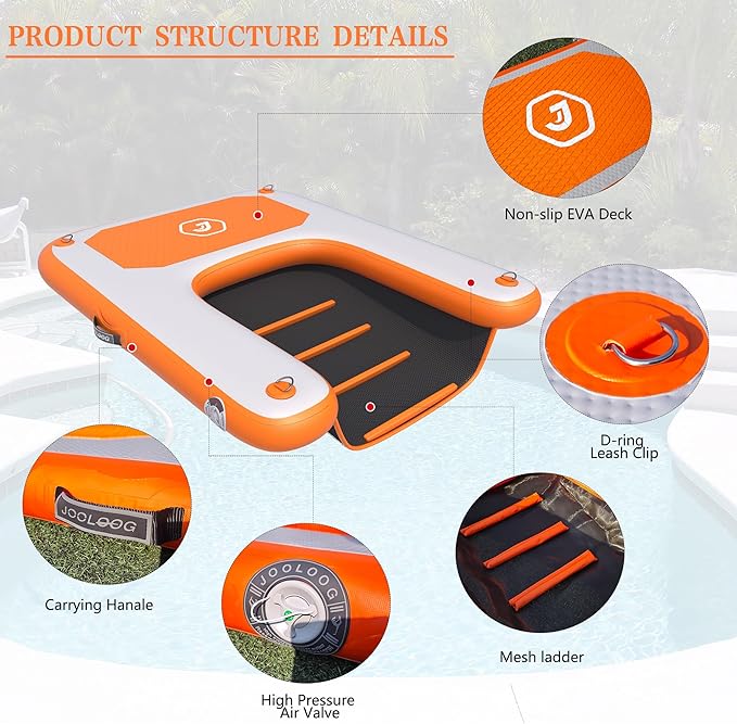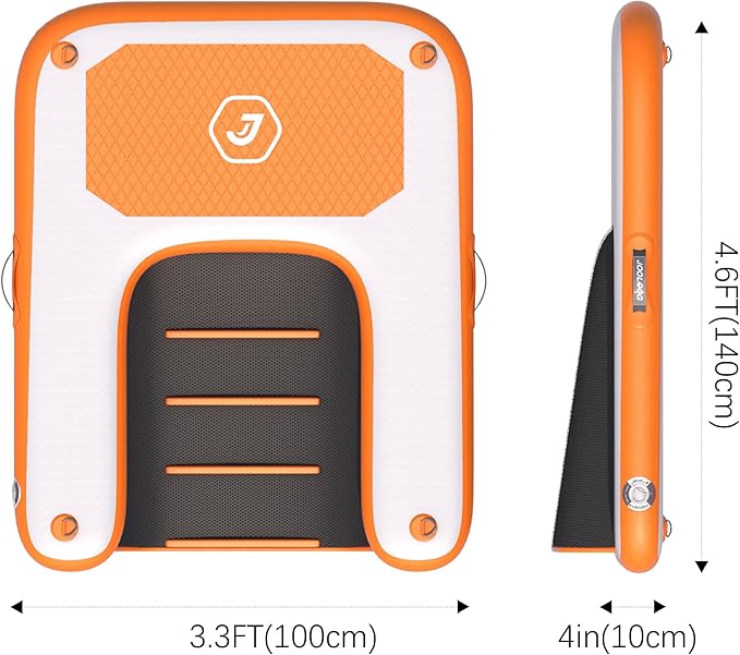 - 【PORTABLE & ANTI-SLIP】With drop stitch technology, the inflatable dog boat ramp has a flat and sturdy surface after inflation, tear and scratch resistant, durable and stable. Built-in EVA anti-slip pads provide your dog with traction and a stronger grip. This design helps prevent slipping and ensures your dog can climb in and out of the water safely and securely.