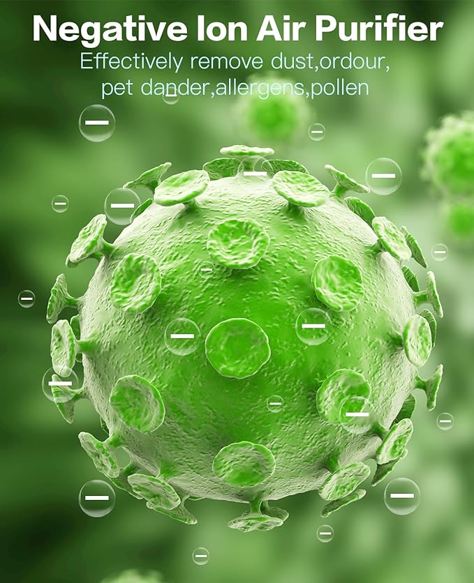 - 【Quiet Operation for peaceful sleep with 3 Led Light modes】- The air purifiers is designed with 3 Led light effects:Light Blue/Warm White/ Light Off. different light idicators suited to various environments.No any noise can be heared when the ionizer works,so you can enjoy fresh air and fall into sound asleep more easily.