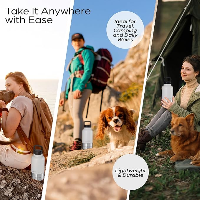 - HYDRATE YOUR DOG ANYWHERE Keep your furry friend refreshed on hikes, walks, and road trips with this 32oz insulated stainless steel water bottle – perfect for long adventures.