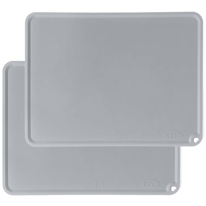 KVK Silicone Placemat for Toddles Kids Non-Slip Reusable Portable Baby Placemats for Restaurant Stain-Proof Children Food Mats Eating Table Mat 2 Pack (Silver Gray)