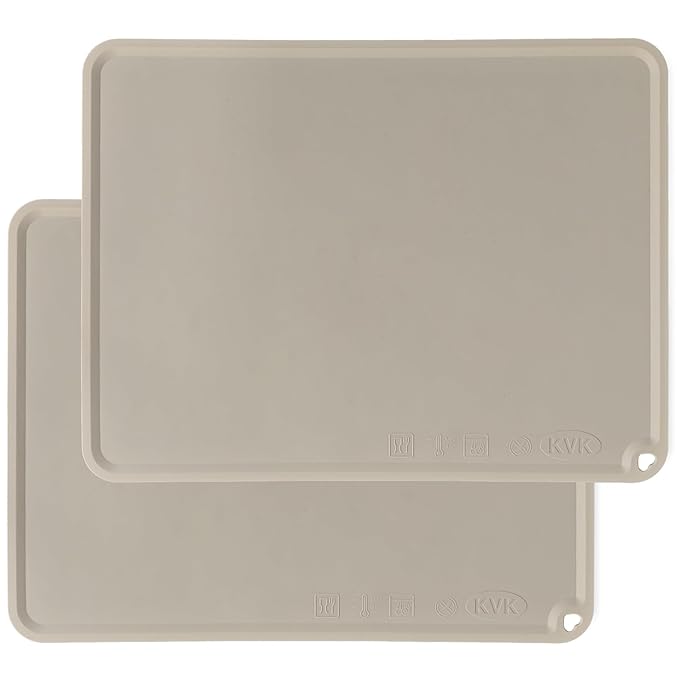 KVK Silicone Placemat for Toddles Kids Non-Slip Reusable Portable Baby Placemats for Restaurant Stain-Proof Children Food Mats Eating Table Mat 2 Pack (Ecru)