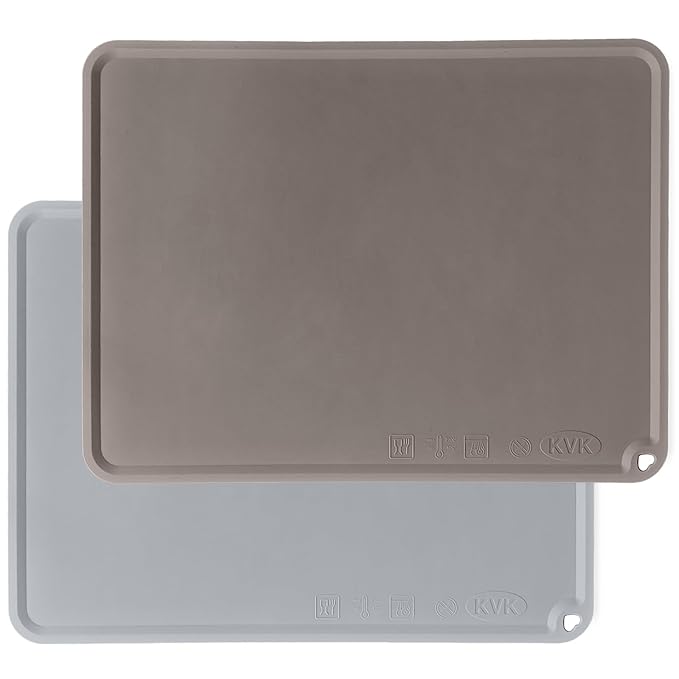 KVK Silicone Placemat for Toddles Kids Non-Slip Reusable Portable Baby Placemats for Restaurant Stain-Proof Children Food Mats Eating Table Mat 2 Pack (Charcoal&Silver Gray)