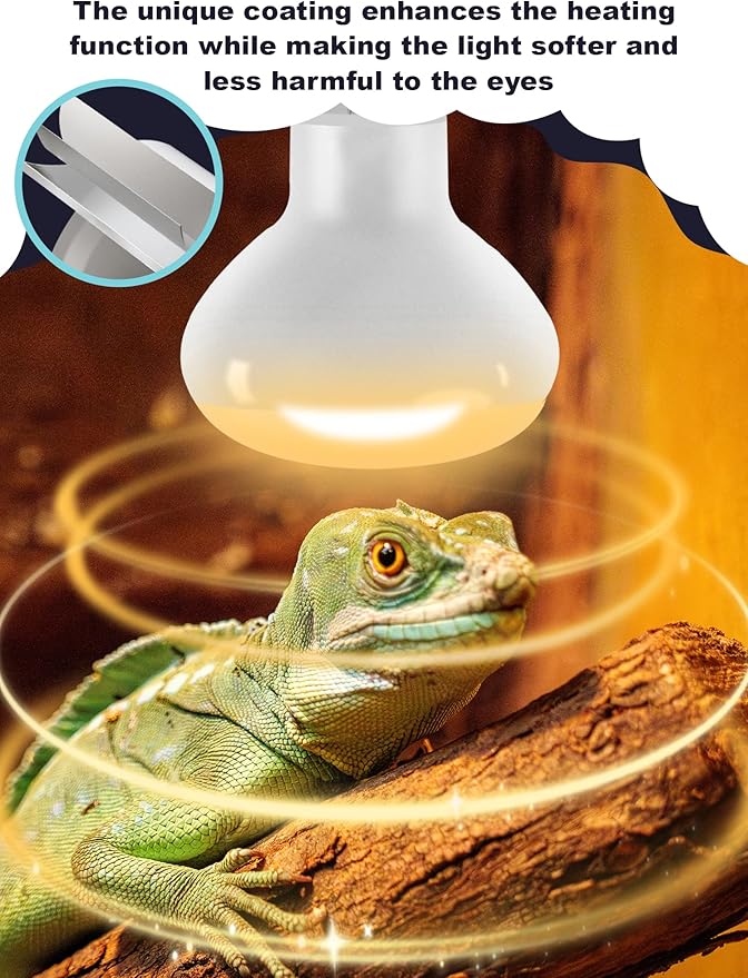 - SAFETY INSTRUCTIONS: The heating lamp bulb takes about 5 minutes to fully illuminate. Do not splash water on the bulb. The surface temperature of the reptile lamp bulb is high when in use. Please keep it at least 8 inch away from your reptile pets. The bulb is made of glass. Please contact us if there is damage due to transportation. We will respond within 24 hours.
