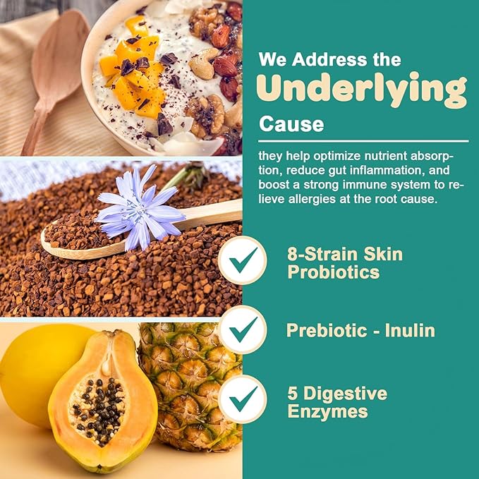 - Advanced Dog Allergy Formula: Our Allergy-Aid Dog Probiotics is expertly designed with 8 probiotics + natural botanicals, the itch relief for dogs targets the root cause of allergies, immune and digestive issues, and supports dogs with sensitive skin