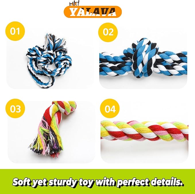 YALAVA 2 Pack Dog Rope Toys for Aggressive Chewers, 20 Inch Heavy Duty Chew Toys for Teeth Cleaning, Cotton Rope Dog Tug Toy for Medium to Large Breed