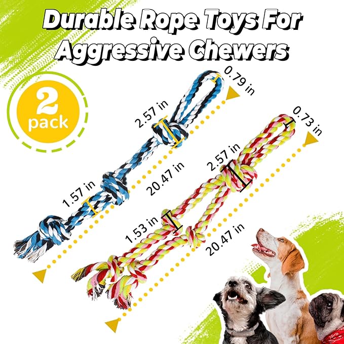 - 20-Inch for Medium/Large Dogs: 2-pack set offers great value for alternating use or multi-dog play. 20-inch length with reinforced knots is ideal for medium/large dogs and aggressive chewers, designed to withstand intense tugging and chewing while reducing choking hazards for smaller breeds