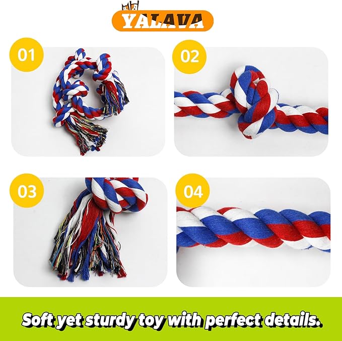 YALAVA 3 Feet 5 Knots Dog Rope Toy for Aggressive Chewers, Heavy Duty Large Chew Toys for Teeth Cleaning, Cotton Rope Dog Tug Toy