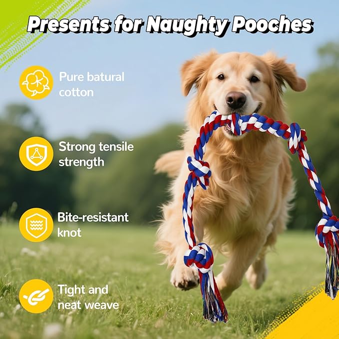 - Safe Cotton Material: Made of 100% natural cotton with no chemical dyes or odors, gentle on your dog’s mouth. Tightly woven for durability against chewing and tugging, resistant to fraying. Machine-washable for easy cleaning to prevent bacterial growth, ensuring hygiene and longevity. Please note: Due to extended transportation time, this product might retain a slight odor. Rest assured it is completely safe for both humans and pets. We recommend airing it out in a well-ventilated space before use for optimal experience