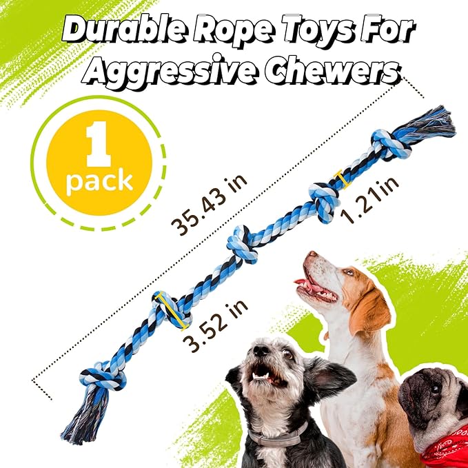 - 3-Feet Length for Large Dogs: Single 3-foot (90cm) rope with 5 reinforced knots, designed for large dogs and aggressive chewers. Extra length allows safer tugging space and withstands powerful jaws, extending playtime durability