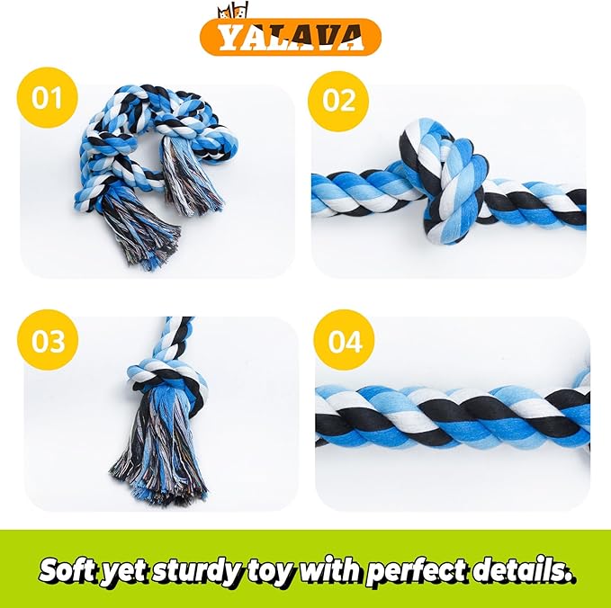 YALAVA Large Dog Rope Toy for Aggressive Chewers, 3 Feet 5 Knots Heavy Duty Chew Toys for Teeth Cleaning, Cotton Rope Dog Tug Toy
