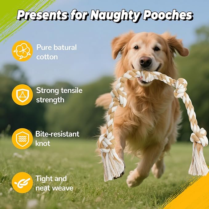 - Safe Cotton Material: Made of 100% natural cotton with no chemical dyes or odors, gentle on your dog’s mouth. Tightly woven for durability against chewing and tugging, resistant to fraying. Machine-washable for easy cleaning to prevent bacterial growth, ensuring hygiene and longevity. Please note: Due to extended transportation time, this product might retain a slight odor. Rest assured it is completely safe for both humans and pets. We recommend airing it out in a well-ventilated space before use for optimal experience