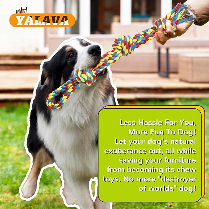 YALAVA 2 Pack 20 Inch Dog Rope Toy for Aggressive Chewers, Heavy Duty Chew Toys for Teeth Cleaning, Cotton Rope Dog Tug Toy for Medium to Large Breed