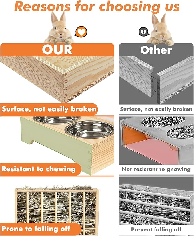 - Lage Capacity: The bunny house Designed to hold a generous amount of hay, this guinea pig hay feeder combo ensures your pet has access to fresh hay all day long. Reduce the need for frequent refills, saving you time and effort.