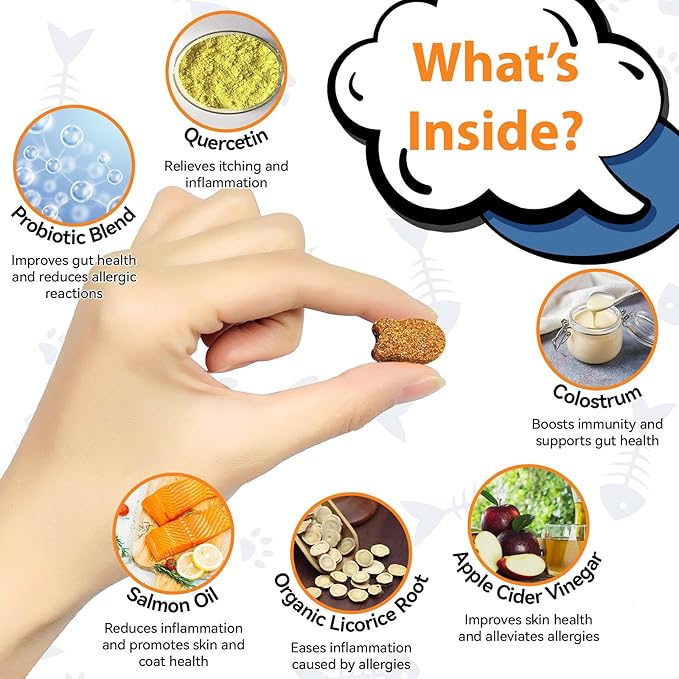 - Long-Term Solution in Every Bottle - Each bottle contains 200 soft chews, providing up to 2 months of allergy relief. Suitable for cats of all sizes and breeds, our chews are a convenient and cost solution for lasting allergy and skin comfort.