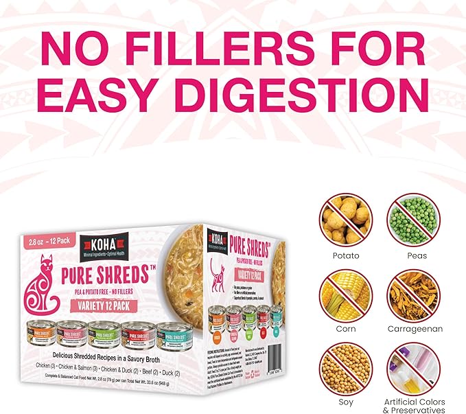 - NO FILLERS: KOHA Pure Shreds are free from fillers like potatoes, peas, corn, soy, or artificial ingredients.