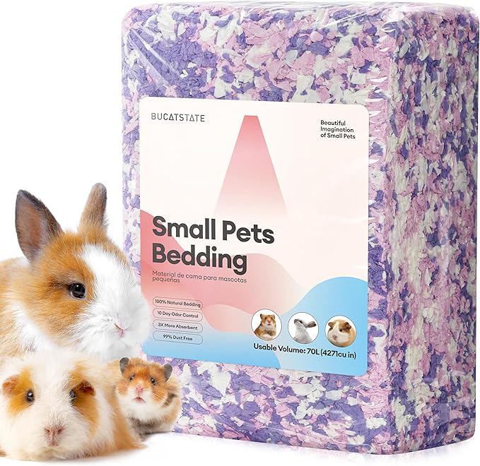 BUCATSTATE Hamster Bedding 70L, 99% Dust-Free Guinea Pig Paper Bedding Odor Control Paper Bedding, Cozy Small Animal Bedding for Rabbit Rat Syrian Dwarf Hamsters Gerbils (Lavender)