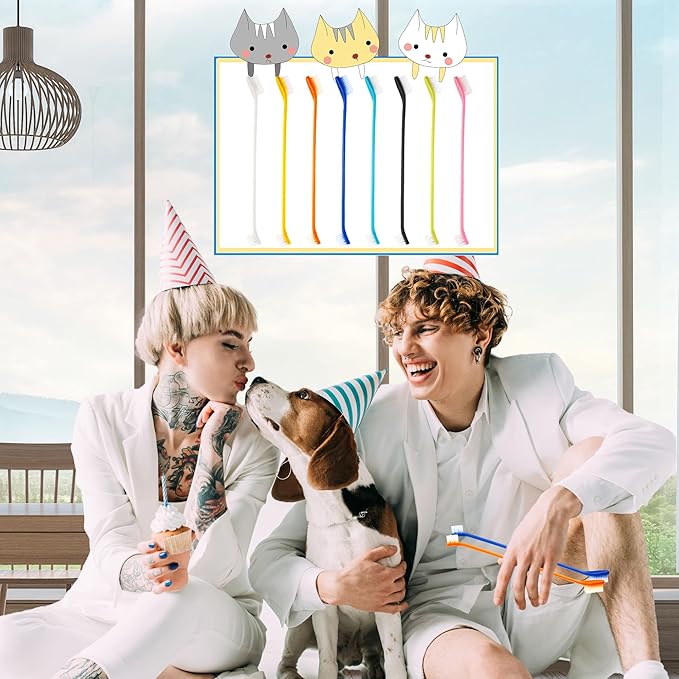 - ✅Safe and reliable: The pet dual headed dental brush is made of reliable PP material, the bristles are soft and will not scratch the pet's teeth or gums, the bristles are fine, and can well remove food residues and plaque between teeth, note: if the toothbrush is deformed when you receive the goods, you can scald it with hot water to restore it to its original shape