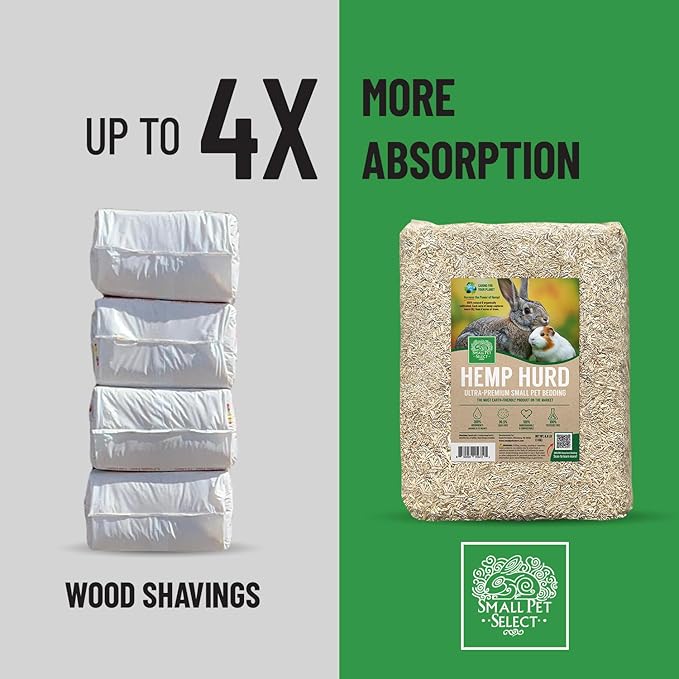 Small Pet Select Hemp HURD Ultra-Premium Small Pet Bedding, Biodegradable Animal Bedding, Eco Friendly Odor Control for Rabbits, Guinea Pigs, Hamsters, and Other Small Animals, 6.6 lb