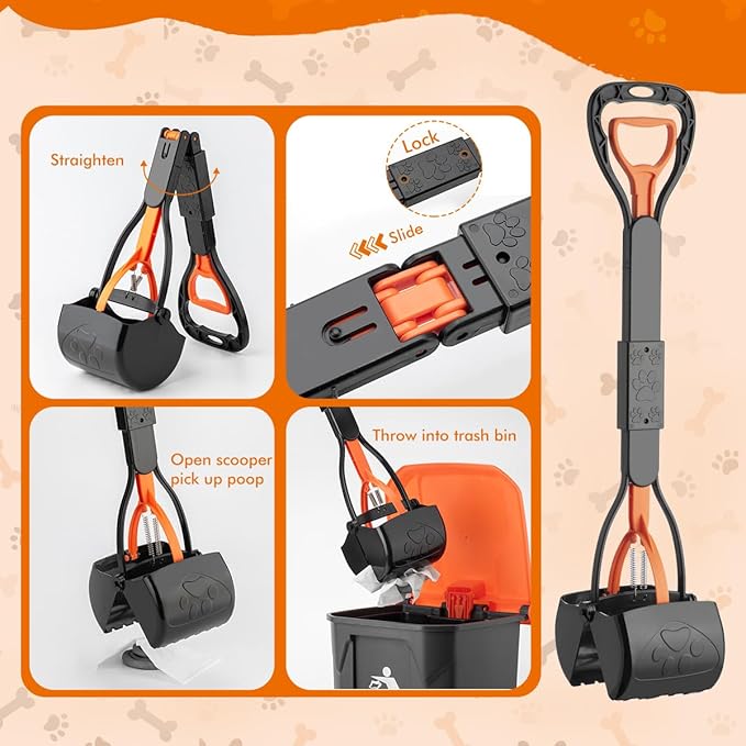 - Easy Use: Dog poop scooper for yard and a walk Received and ready to use, just push the parts together and lock into place, no tools required. WLQiu Dog Pooper Scooper Set saves your cleaning time—A more relaxed pet-raising lifestyle for U!