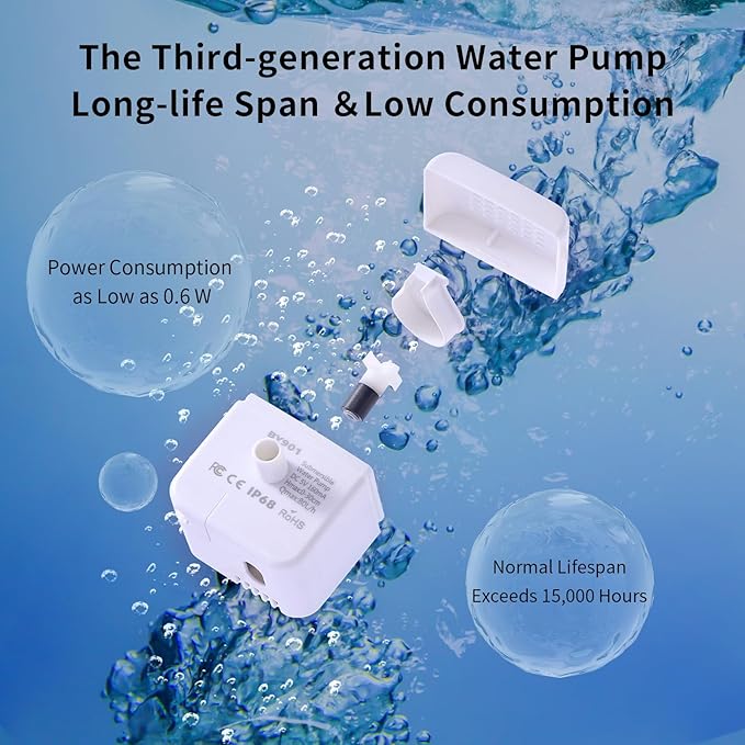 - Large capacity water tank: Vividorama cat fountain boasts a 101 oz/ 0.7 gal water capacity, ensuring extended use without frequent refills, making it ideal for homes with multiple pets