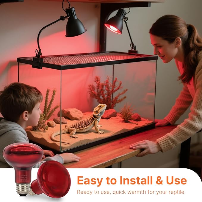 - Easy to Install & Use: The standard E26 base makes installation quick and hassle-free - just unbox, screw it in, and turn it on. This red heat bulb delivers steady nighttime warmth for your reptiles without complex installation or adjustments