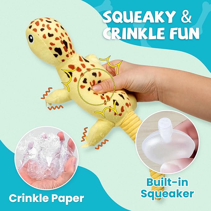- Value Dog Toys Set: Our dog toys includes 5 different reptile dog toys - a blue crocodile dog toy, a yellow lizard dog toy, a green frog dog toy, a turtle dog toy, a purple chameleon dog toy; Not suitable for aggressive chewers and are not indestructible