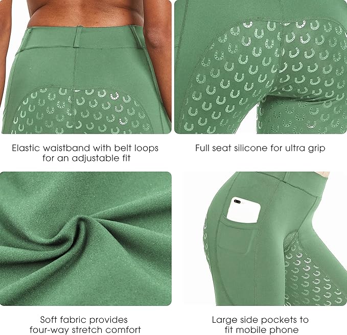FitsT4 Sports Women's Full Seat Riding Tights Active Silicon Grip Horse Riding Tights Equestrian Breeches