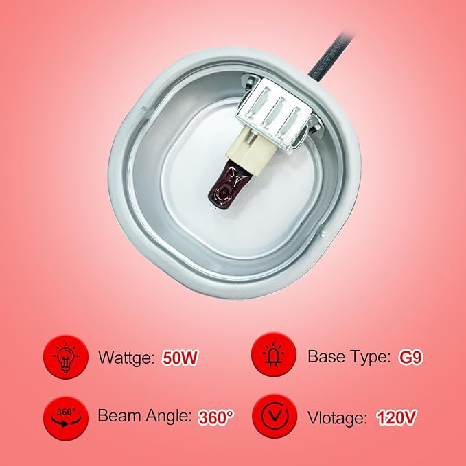 - Universal Compatibility & Warranty: This reptile heat lamp fixture works with most standard 50W G9 bulbs (included 1pcs). Backed by our 180-day hassle-free replacement for defects, ensuring reliable habitat heating solutions