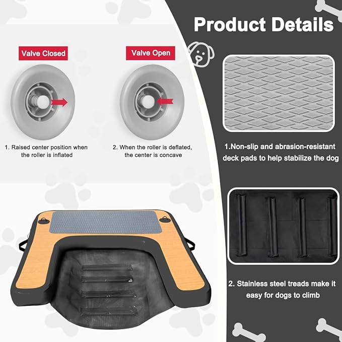 - Easy to Climb: The mesh ramp design of the dog dock is convenient for dogs to climb, and the anti slip EVA pad helps stabilize the dog's body
